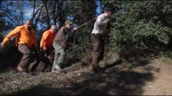 Els voluntaris de Protecció Civil treballen en la retirada d’arbres caiguts als entorns forestals